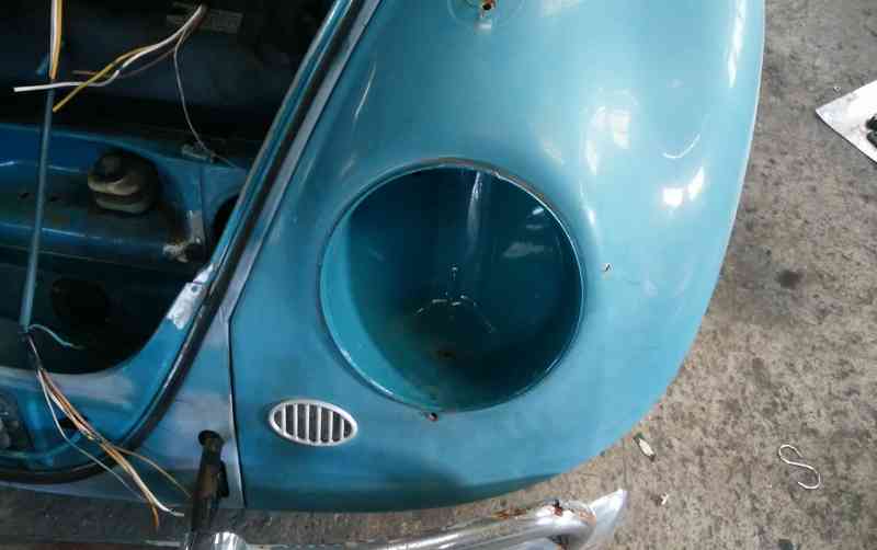 板金が完了して見事に復活したロクサン!これでドライブトレイン&電装&エンジン&トランス&アウトサイドペイントを仕上げれば、かなり良い車になります。作業的には全て?ステイツで仕上げたかったのですが、仕事の都合上断念!知り合いのワーゲン屋さんに旅立ちます。ガラスのひび&ヘッドライトが無いだけで走りには問題なし!陸送屋さんにお願いしたら、ヘッドライトはマストアイテムで、ガラスのひび割れもダメみたい・・・・。想定外のダメ出しに、チョイと凹む私で御座います。取り敢えずハーネスを各3本ずつ引いてライトを取付、ガラスもGoodUSEDに交換しましょう。ウィンドーシールも一緒に交換するので、ボウズさんちの形成タイプをチョイス!アウターのシールのかかり具合をよ〜〜〜くチェックしながらはめ込みます。 |